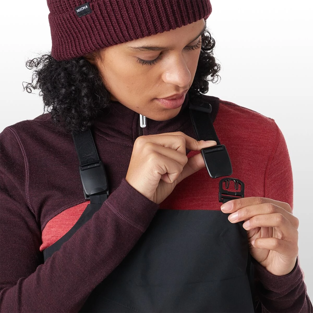 - Adjustable halter suspenders keep the bib secure as you ski