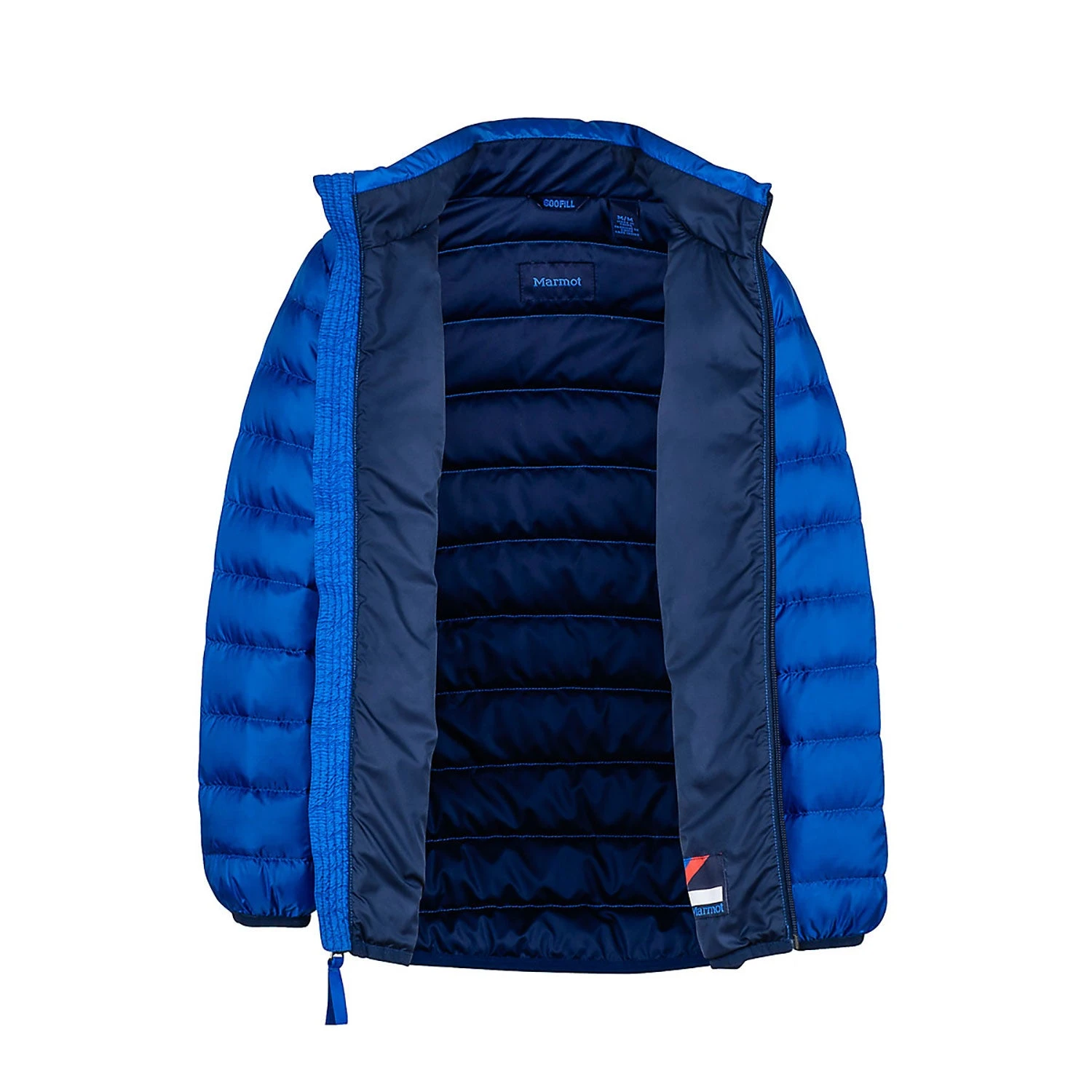 The boys’ TALLUS jacket delivers down warmth and comfort in a streamlined design, making it the perfect seasonal insulator. It’s padded with 600 fill power down that has a Defender finish, helping reduce moisture soakage and trap in warmth. The polyester ripstop outer fabric is light and sheen, cutting weight and shedding light precip thanks to its DWR finish. Zippered hand pockets provide storage and warmth. The elastic bound sleeve cuffs and lower hem ensure an optimal fit. The Marmot Tallus is an ideal insulator for crisp early winter conditions in the city and as a mid-layer under your hardshell.