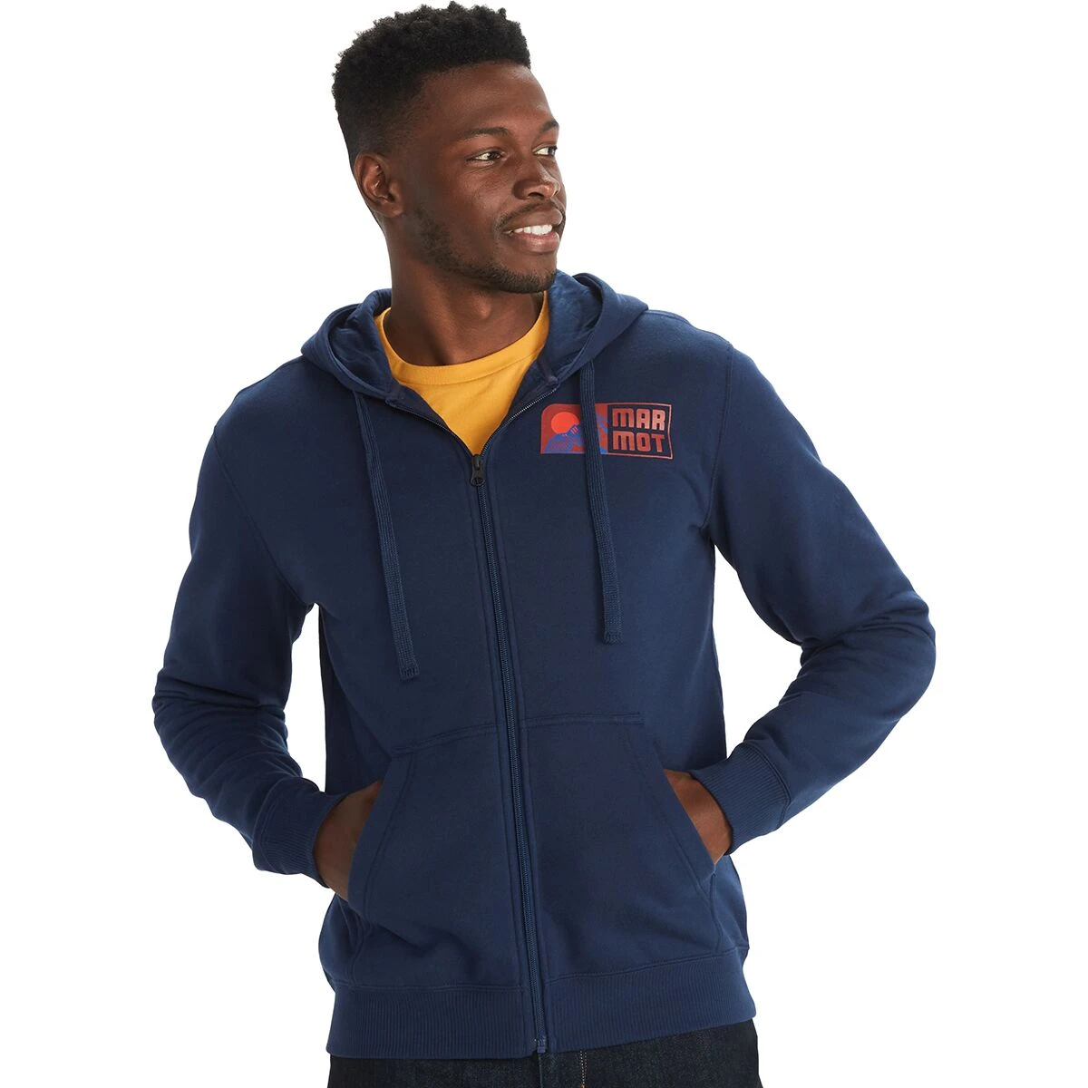 The Marmot Full-Zip Hoodie boasts a cotton blend designed for adventures in town or shoulder season hikes.