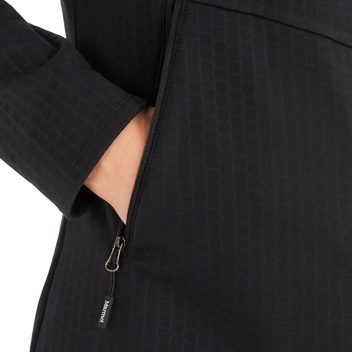 - Technical grid fleece wicks moisture for comfort