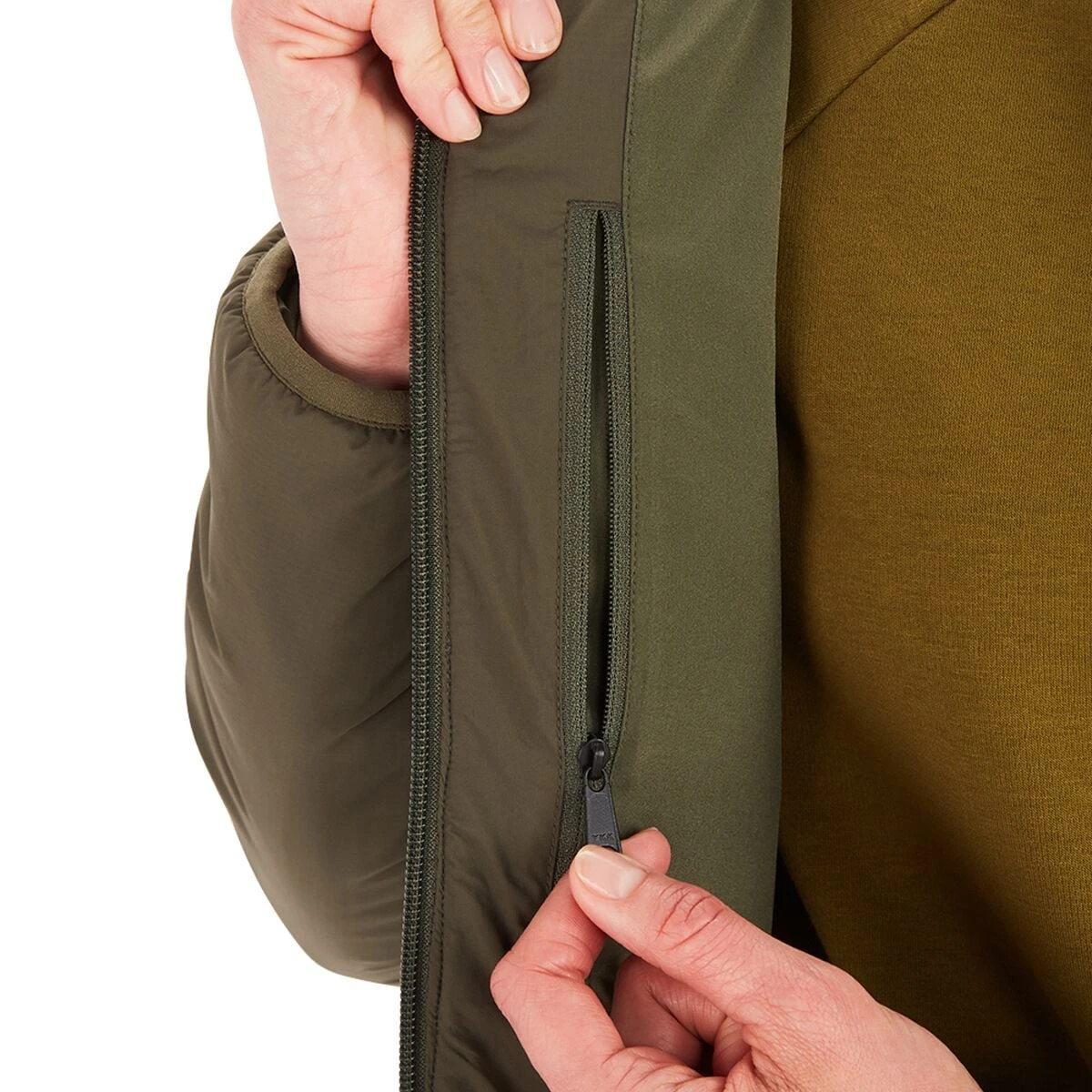 Made with a recycled shell and lofty insulation, Marmot’s Novus Hooded Jacket provides an eco-conscious and lightweight fit for our outdoor adventures. The PrimaLoft Silver fill insulates even when damp and is highly breathable, so we stay comfortable whether we’re wearing this jacket on its own or under layers.