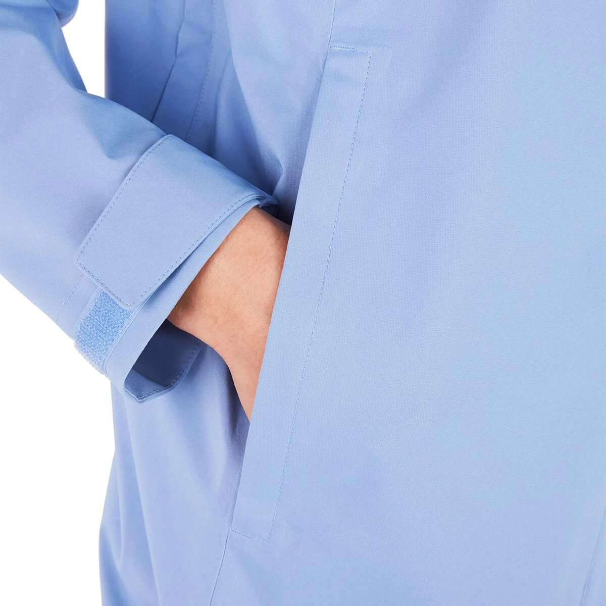 - Adjustable hem and hook-and-loop adjustments on sleeves for fit