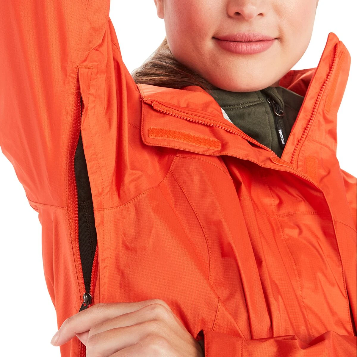 - Underarm zips vent out excess body heat on fast hikes