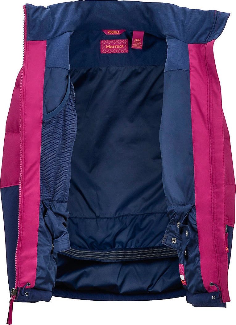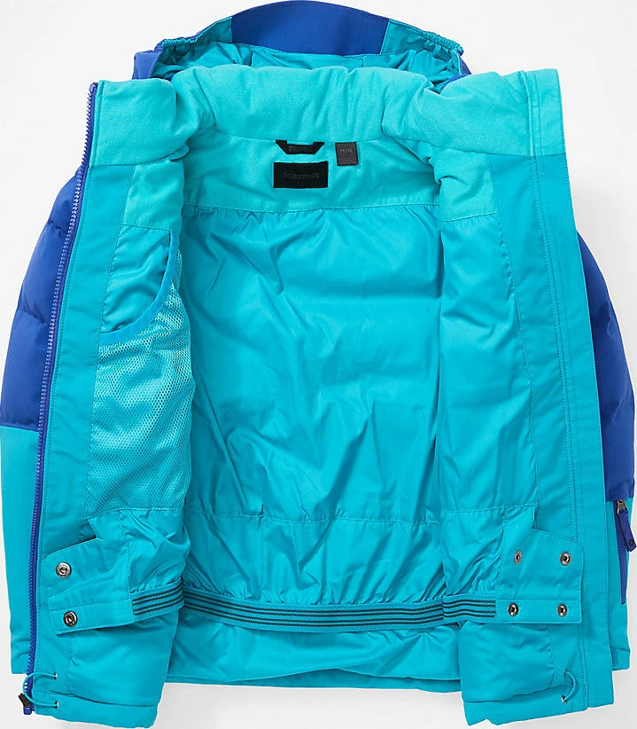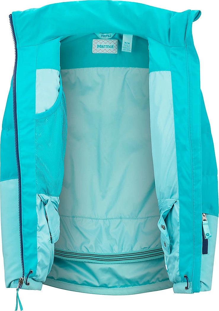 |-|Marmot évolue aussi vite que l’univers des sports de glisse, et c’est pourquoi la marque continue de pouvoir offrir des produits de performance innovateurs. Le manteau Slingshot pour fille est un modèle conçu avec une isolation en duvet avec facteur de gonflement 700. Également doté d’une membrane respirante, imperméable et coupe-vent, il est parfait pour une journée passée à la montagne.