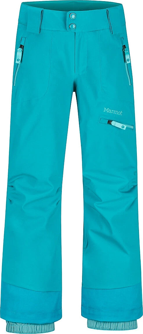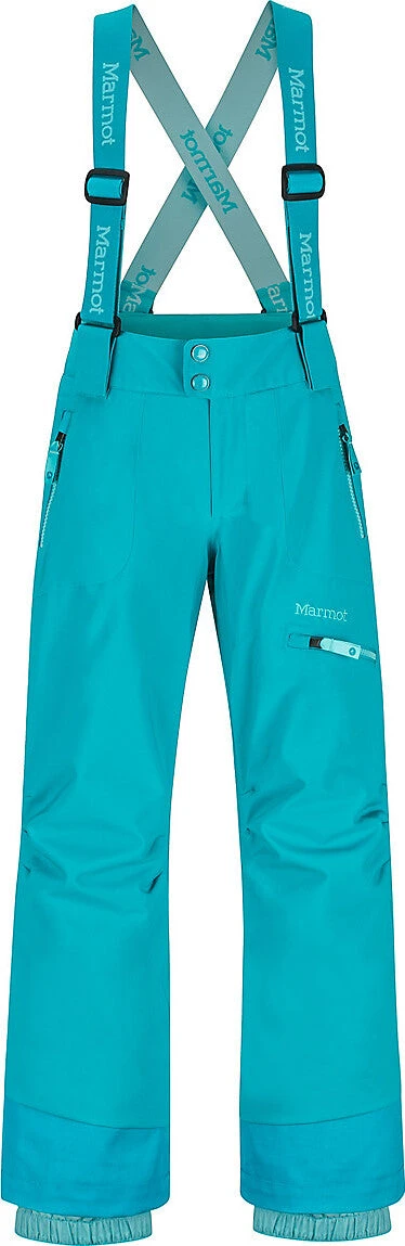 Hit the slopes with the Girls’ Starstruck Ski Pants. Made with a two-layer waterproof and breathable MemBrain® fabric that’s seam taped to keep water out, these pants also feature a unique, adjustable-length cuff that grows with her. The Thermal R lightweight insulation keeps her warm and wicks away sweat. Removable suspenders allow for a customizable fit. Mountain-savvy features include articulated knees for mobility, leg vents with waterproof zippers to get boots on/off and internal gaiters with gripper elastic to keep out snow.
