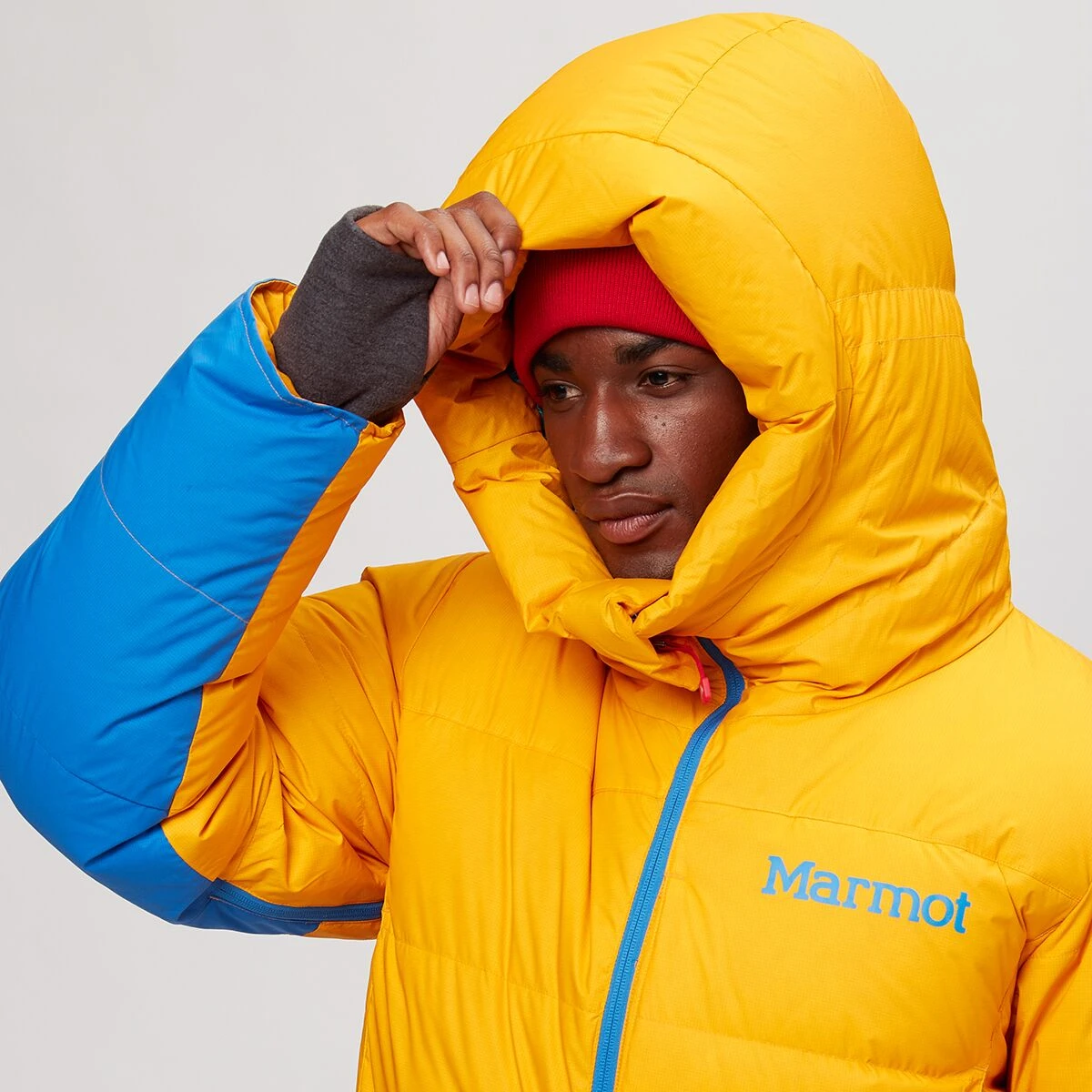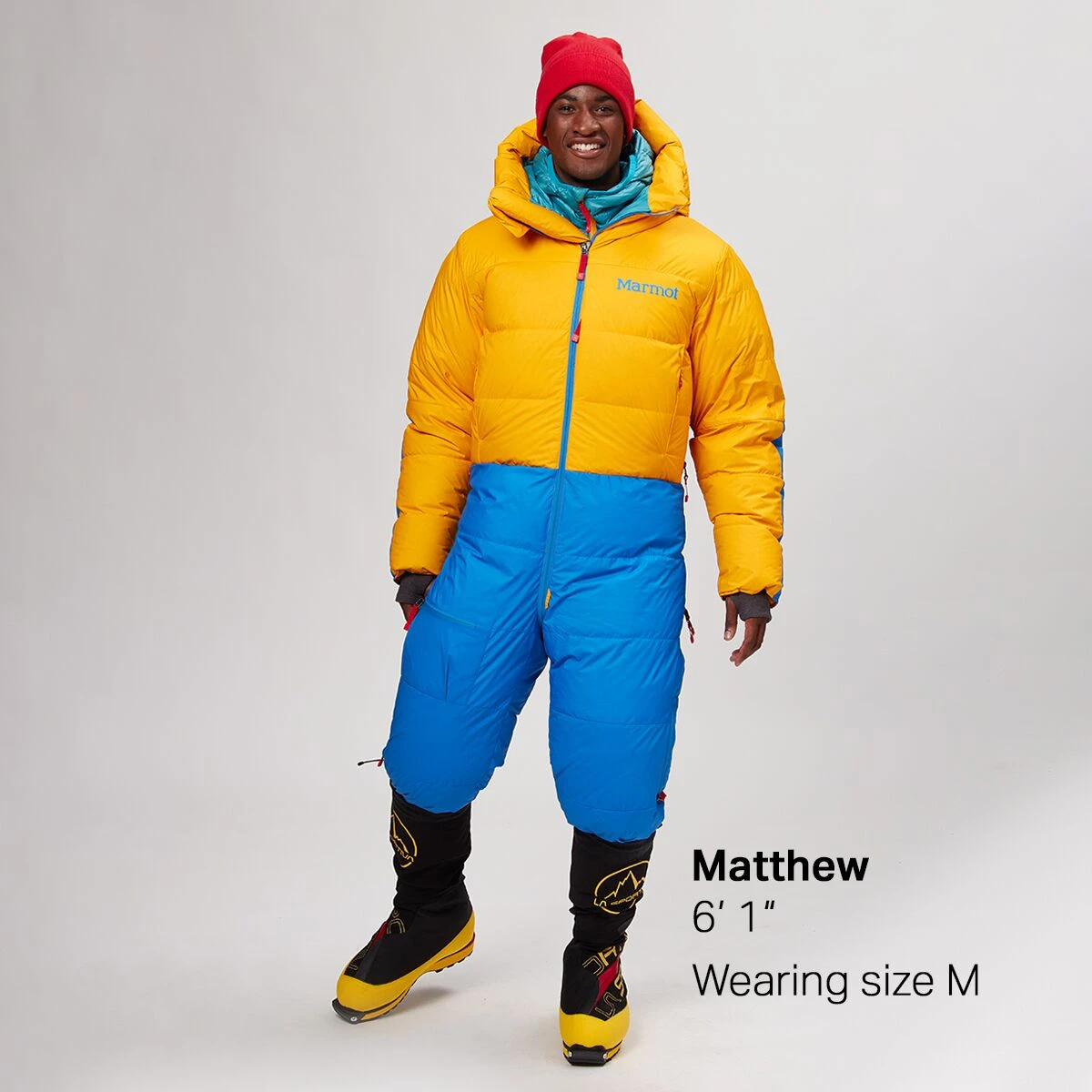 After a day spent skinning or hiking deep in the mountains to basecamp, the Warmcube 8000M Suit is ready to immerse us in total warmth and comfort for the long, brutal night ahead. Featuring Marmot’s Membrane 2L waterproof and breathable fabric with Pertex Quantum panels, the Warmcube helps keep us dry in blistering winds and snowfall while still allowing extra heat to escape. And since it’s stuffed with an incredible amount of 800-fill down insulation, the Warmcube keeps us warm without weighing us down.